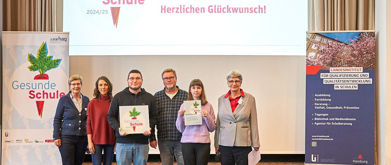 Die harte und stetige Arbeit zahlt sich aus: Wir freuen uns sehr, erneut als Gesunde Schule ausgezeichnet worden zu sein. Mit unseren beiden Handlungsfeldern „Durchführung einer pädagogischen Jahreskonferenz zur Vermeidung von Diskriminierung und zur Förderung eines friedlichen Schullebens“ an der sowohl Lehrkräfte, als auch Schüler:innen und Vertreter:innen des Schulvorstandes teilgenommen haben und „Fortführung des Angebotes von Kursen zum Anti-Cyber-Mobbing“ konnten wir die Jury überzeugen, ein gelungenes Angebot an Schülerinnen und Schüler sowie Lehrerinnen und Lehrer gemacht zu haben.