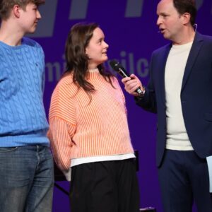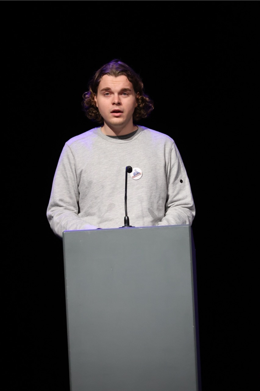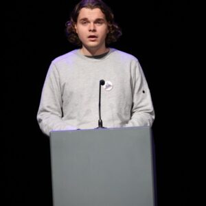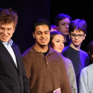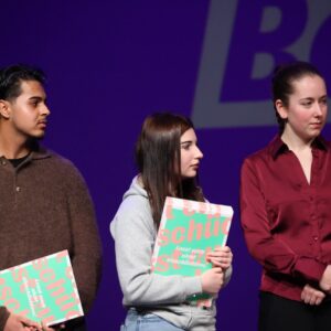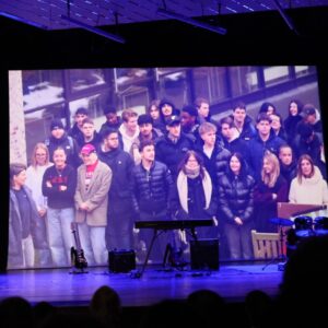 Am 27. Januar fand dann die Preisverleihung im Ernst Deutsch Theater statt. Die namentlich ausgezeichneten Schüler:innen sahen zum ersten Mal den Film, den der NDR zum Projekt erstellt hatte. Dann der große Auftritt: alle Schüler:innen gingen auf die Bühne und Frau Kroch hielt ihre Laudatio. Frau Kroch hob die Vielfalt des Projektes hervor sowie dessen gemeinschaftsstiftenden Effekt. Weiter lobte sie den Mut, wie die Schüler:innen über die Schule hinaus ihre Haltung vertreten haben. Auch betonte sie, dass diese Leistung an einer beruflichen Schule, etwas ganz Besonderes ist. Sie wünscht den Gewinner:innen, dass ihr Wunsch, den Namen „Julius Hirsch Schule“ weiter zu tragen, in Erfüllung geht. Hannes Teetz hielt im Anschluss eine kurze Rede, in der hervorhob, dass dieser Preis ein Preis für die vielfältige Schulgemeinschaft der BS02 sei.